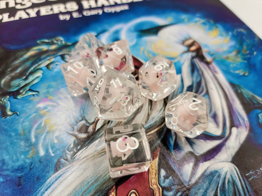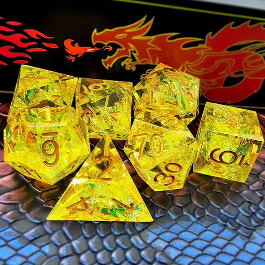 7pc Yellow Transparent Resin Sharp Edge DND Dice Set