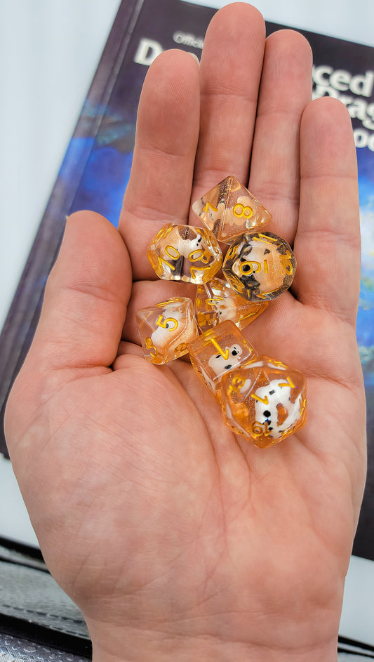 7pcs/Set Clear/Transparent Dairy Cow Farm Bovine Animal Polyhedral DND Dice RPG MTG Role Playing Game Tabletop Orange