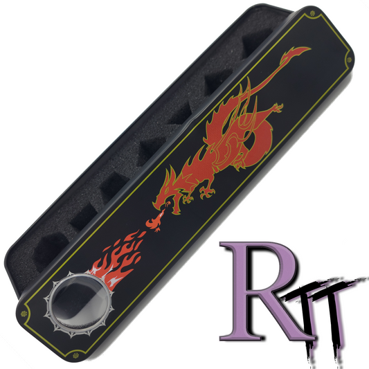 7 Piece Black Metal DnD Container with Red Fire Breathing Dragon