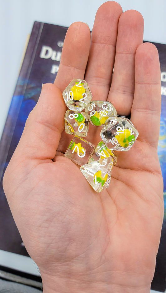 7pcs/Set Clear/Transparent Pokemon Psyduck Polyhedral DND Dice RPG MTG Role Playing Game Tabletop Yellow