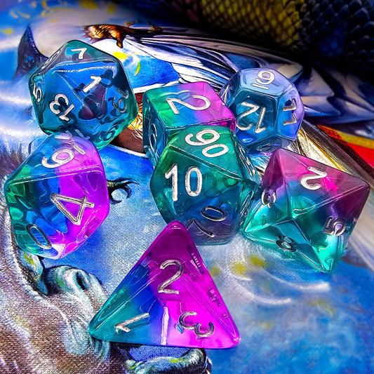 7pcs/Set Blue, Purple & Green Resin DND Dice