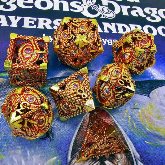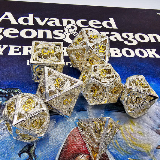 Hollow Metal Orange & Silver Dragon DND Dice Set