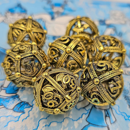 Shiny Gold Hollow Metal Dragon Orb Dice