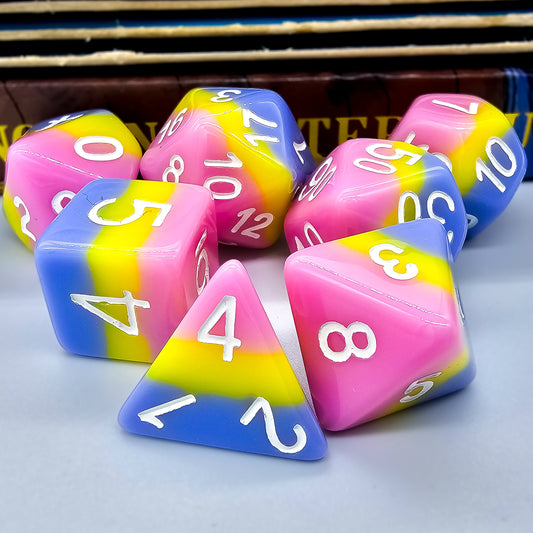 7pcs/Set Pastel Resin DND Dice (Blue, Yellow & Pink)