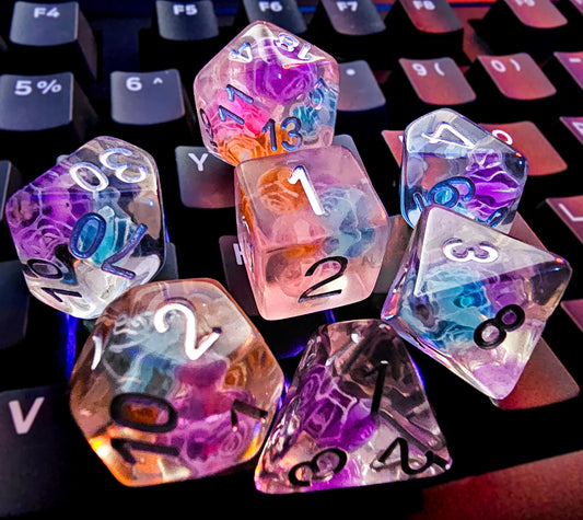 7pcs/Set Resin Multi-Color Rose Bead DND Dice