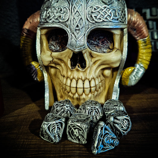 Hollow Metal Silver & Blood Skeleton DND Dice Set