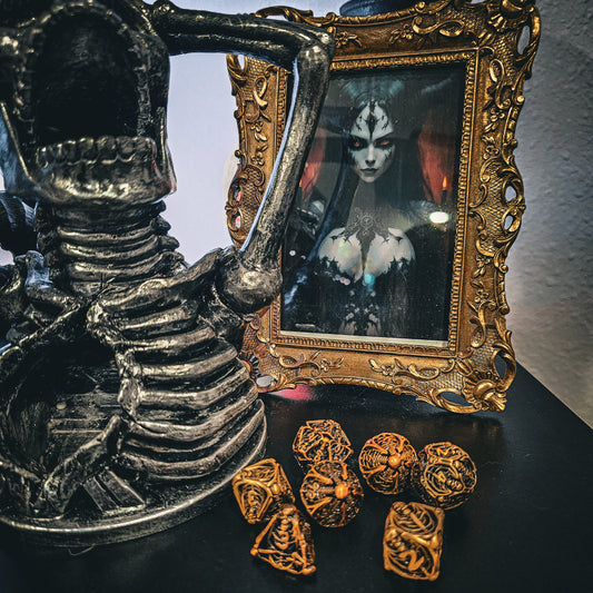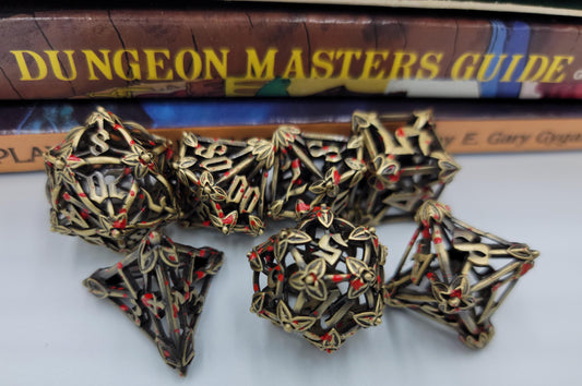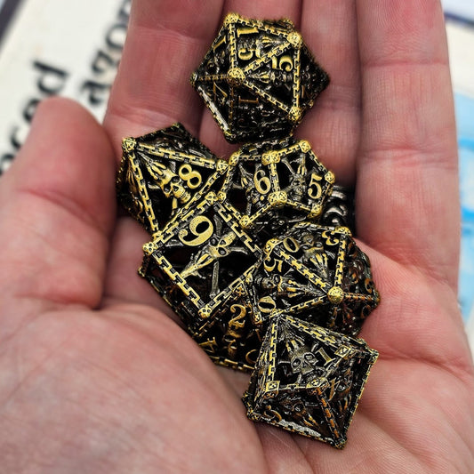 Hollow Metal Ancient Gold Skeleton DND Dice Set