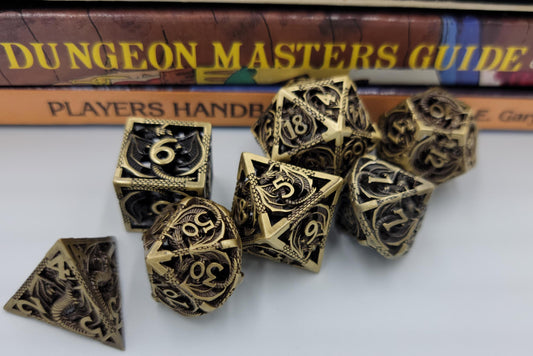 Hollow Metal Ancient Gold Dragon DND Dice Set