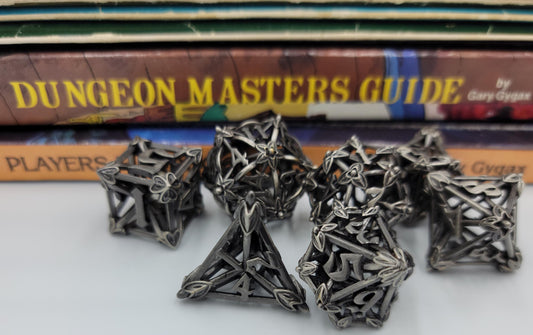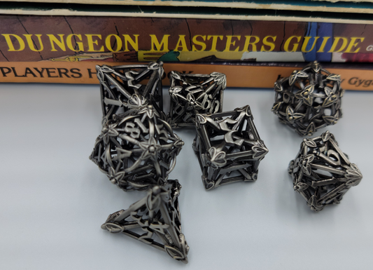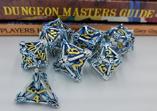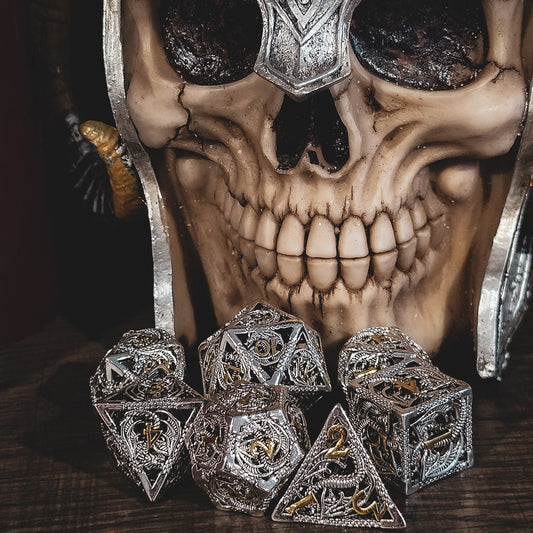 Hollow Metal Silver & Gold Dragon DND Dice Set