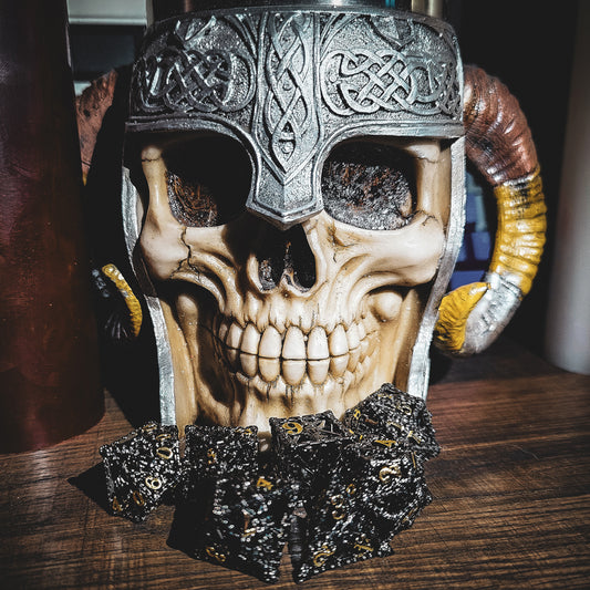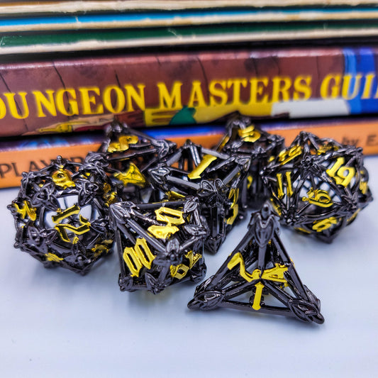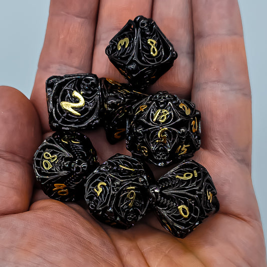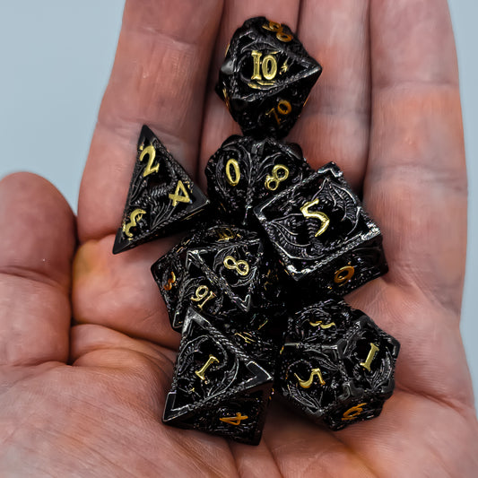 Hollow Metal Black & Gold Dragon DND Dice Set