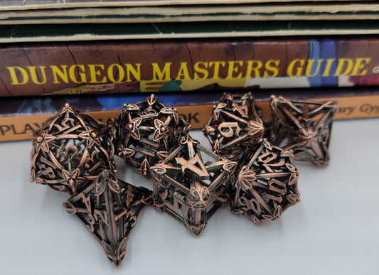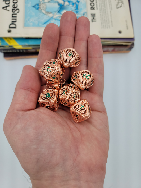 Hollow Metal Rose Gold Skeleton DND Dice Set
