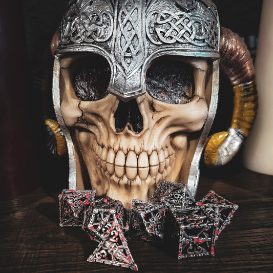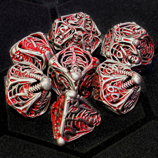 Hollow Metal Silver & Blood Skeleton DND Dice Set