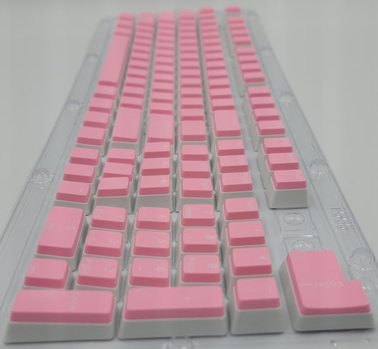 100% Full Size 104 Key Pink & White Pudding Keycap Set for Mechanical Keybaords