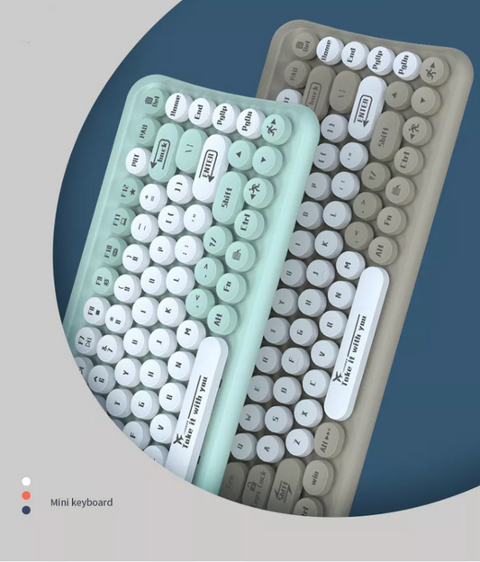 Mini 2.4G Wireless Retro Keyboard and Mouse Combo Round Keys Computer Laptop Mac